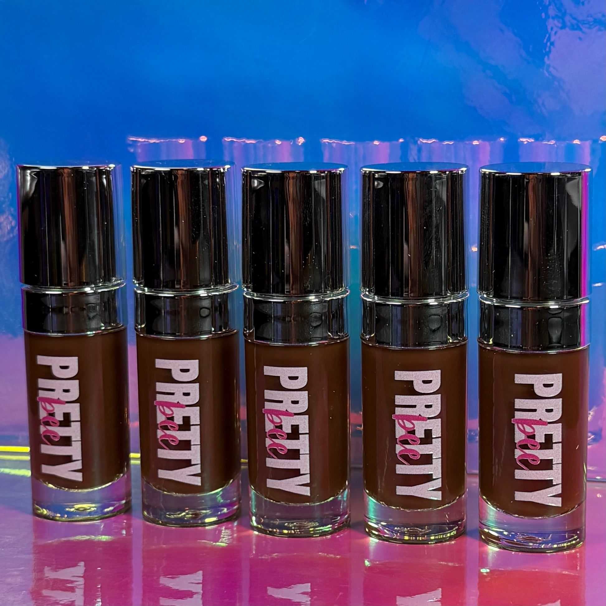 A rich brown lip oil with a deep, glossy finish.